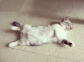 The mackerel tabby cat has silver fur thinly striped with grey. They inherited their stripes from their Libyan wildcat roots, so they are sometimes cautious towards everything like the classic brown tabby. A prominent feature of the mackerel tabby is that if you are easy on them even once, they become very spoiled.