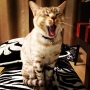 The Ocicat is a clearly contrasted with shining fur and beautiful spotted patterns. Its roots come from breeding Abyssinian and Siamese cats, and was actually born accidentally. After that, it began being bred with the American shorthair, and became the large and powerful Ocicat we have now. It looks kind of tough at first, but it is actually has a very friendly personality. The Ocicat occasionally shows its wild side as a kitten, but as it gets older it starts to calm down. People who raise Ocicats often become very calm, and it is said that they bring “happiness”.