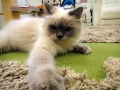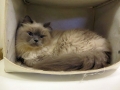 With long gorgeous hair, a flat face, the plump body of a Persian, and the point colors (light colors at the tip of the hairs) and blue eyes of a Siamese, the Himalayan is an incredibly popular cat that inherited the best. However, it took over 30 years of trial and error before the Himalayan was born. Its personality is calm like a Persian’s. It likes an easy going life, and likes to lie around without moving much.