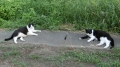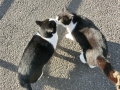 If a group from 4 to over 10 cats gathers in the same place, it is called a “cat gathering.” In a vacant lot or parking lot, without any reason or fighting they gather seemingly at random and leave randomly as well. The cats that participate are usually determined. It is thought that there may be a set territory for each gathering, and the cats gather so there are no useless fights. At first glance it doesn't seem like there is a set boss, but there does seem to be a determined hierarchy. The cat sitting on the highest perch and looking down on the other cats is the boss cat.