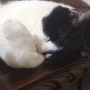 猫に踏まれて朝を迎える猫の下僕。 ご主人様、重いです。腹がたぷた… 「あ゛?」